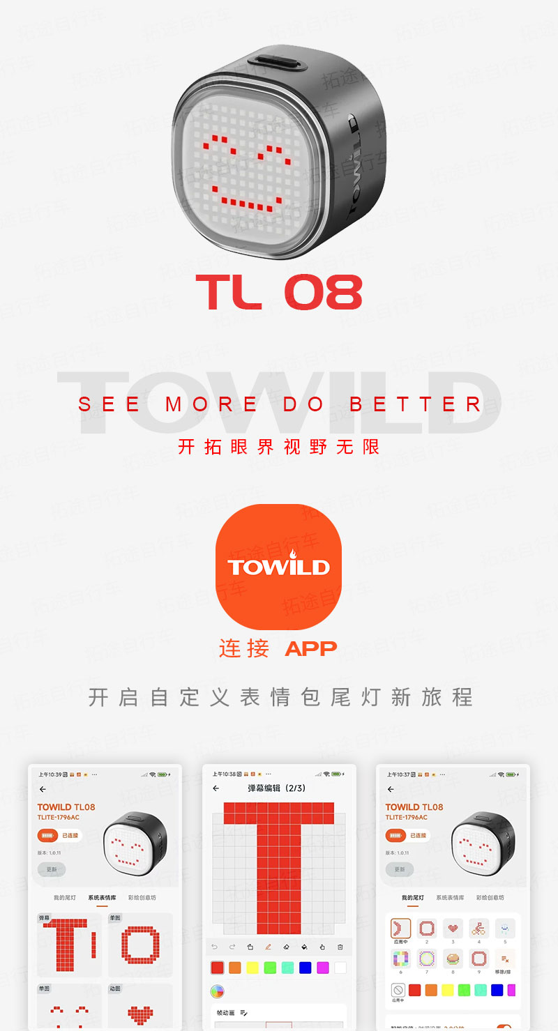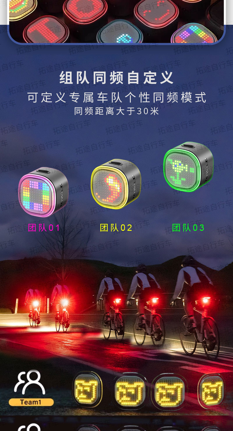 拓野/TL03 PRO/自行车多彩尾灯/支持团队同步模式