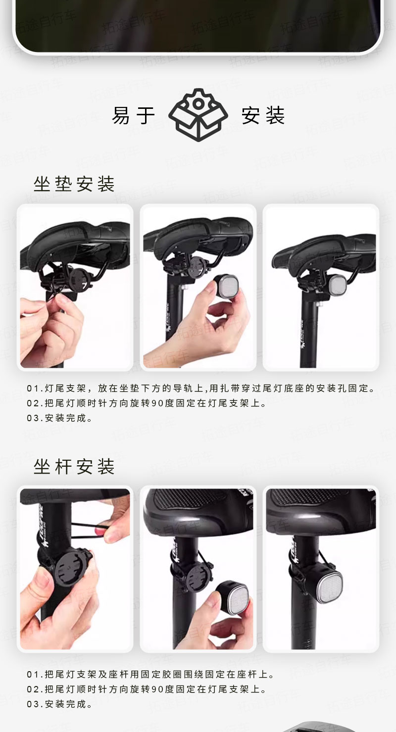 拓野/TL03/快拆智能刹车高亮尾灯/自行车尾灯/IPX6