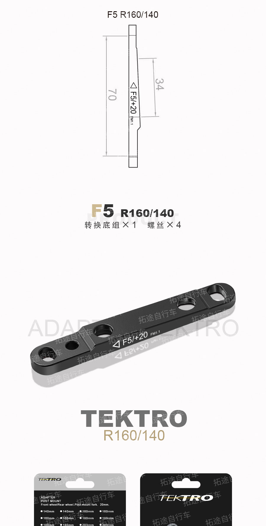 彦豪TEKTRO/ F5 R160/140 /油压碟剎/平装式转换座组