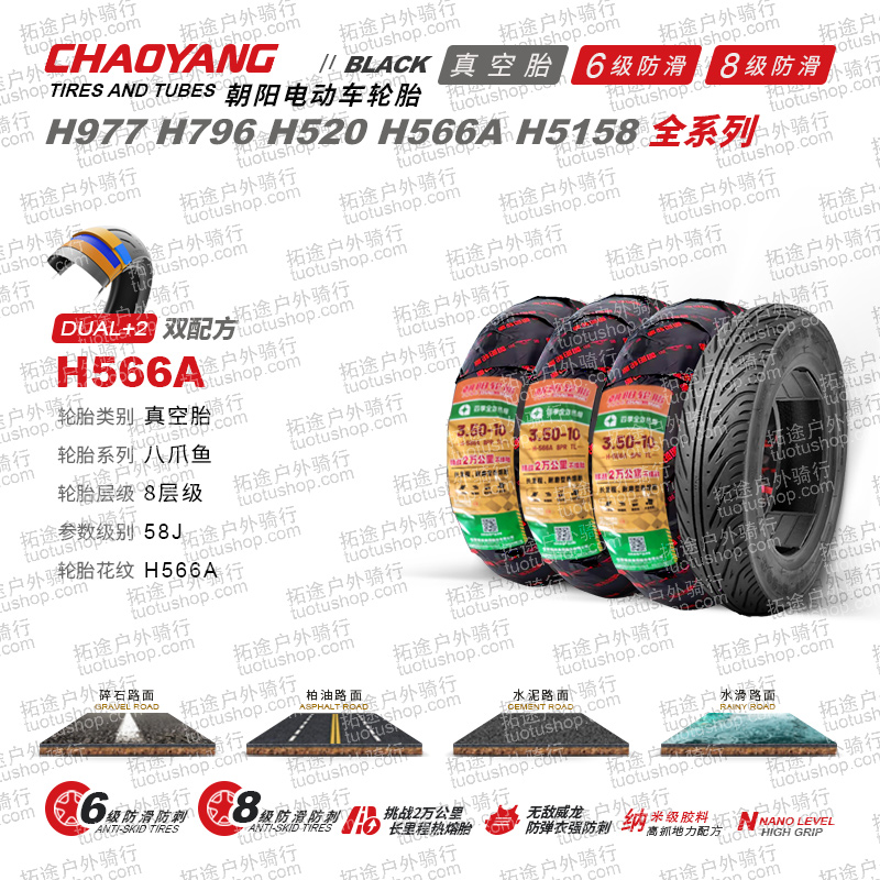 朝阳电动车外胎/四季全效热熔胎/3.50-10/H566A/8层真空防刺防滑胎