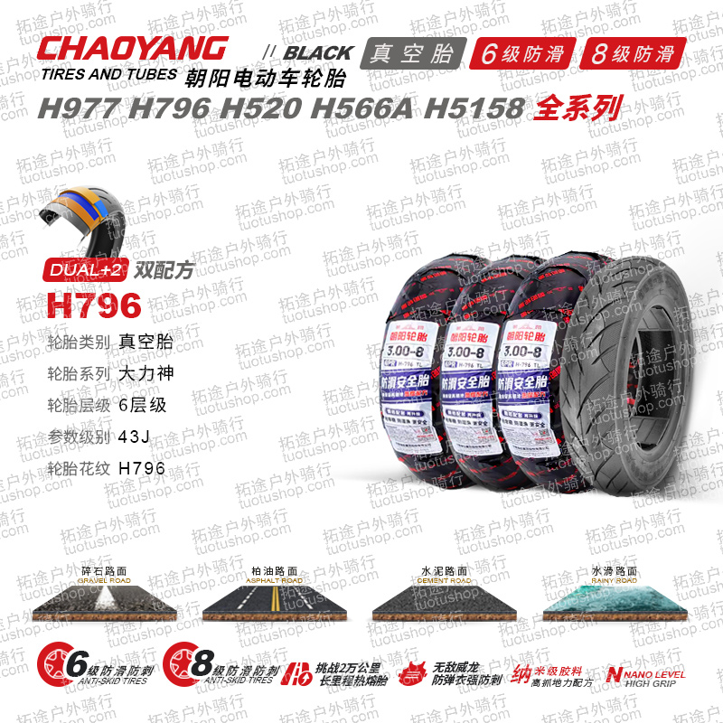 朝阳电动车外胎/白羊座-3.00-8/H796/6层真空防滑胎