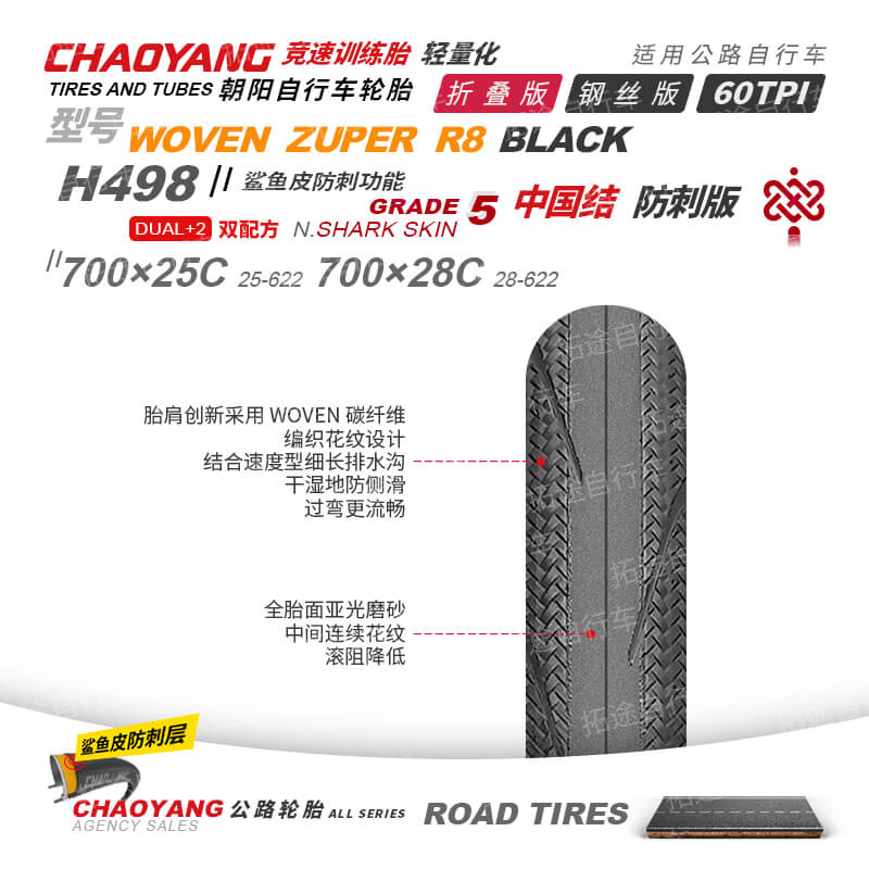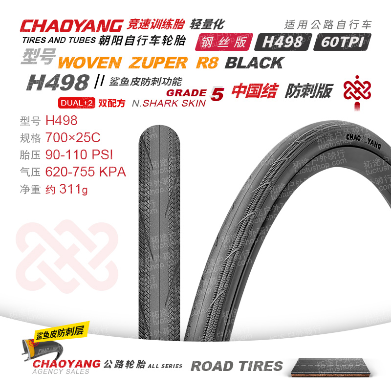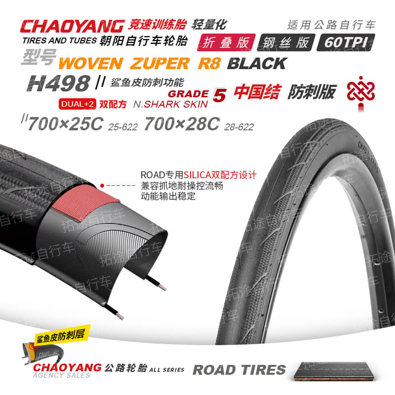 朝阳公路车外胎/中国结H498/700C系列/轻量化/竞赛级/训练胎/防刺/折叠版