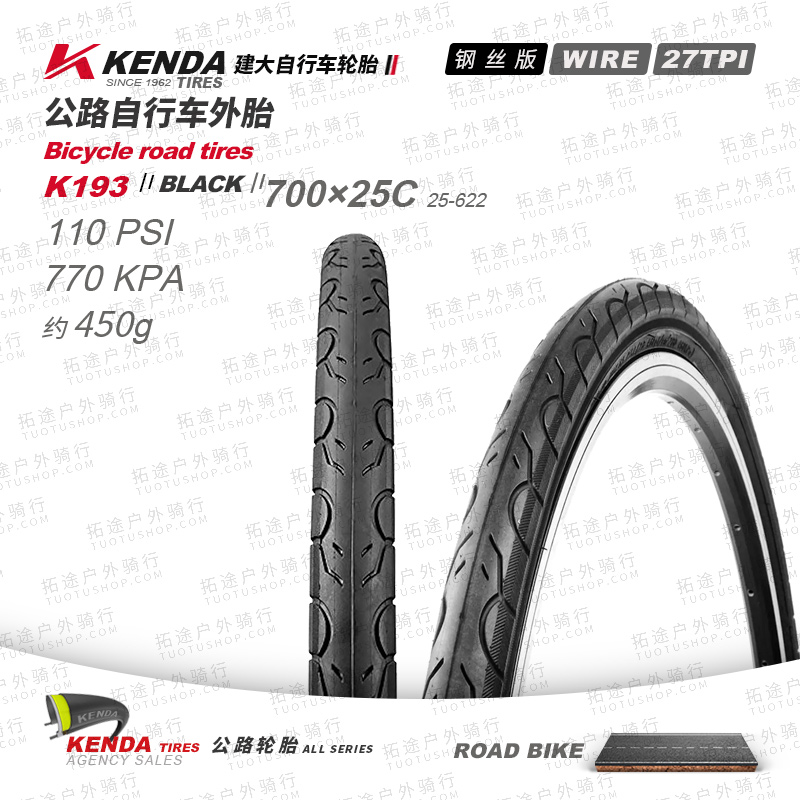 建大K193/公路车外胎/钢丝版/700C系列/27TPI