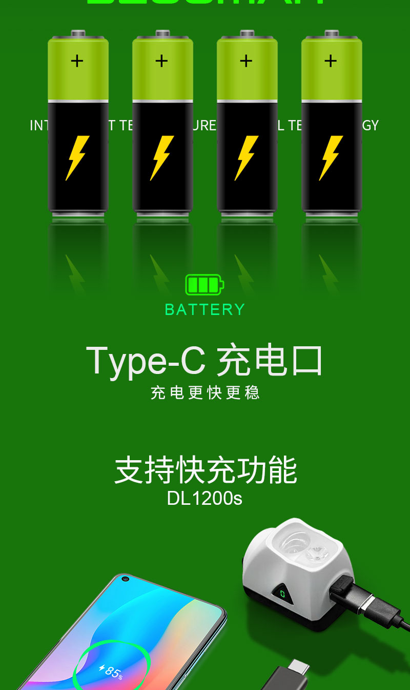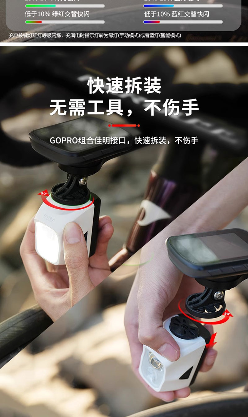 拓野/BR800/BR800S/BR1000系列充电自行车前灯/电池可拆卸