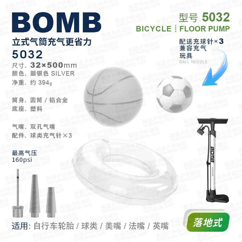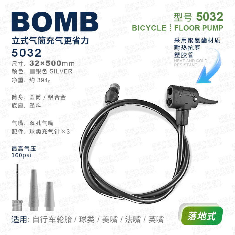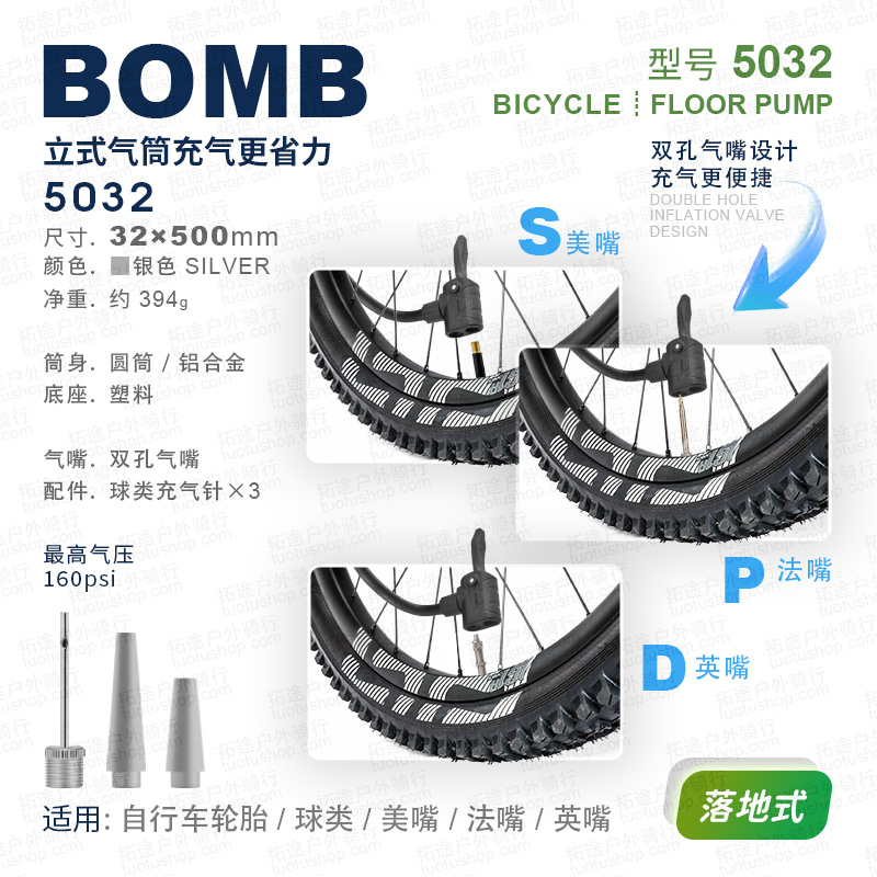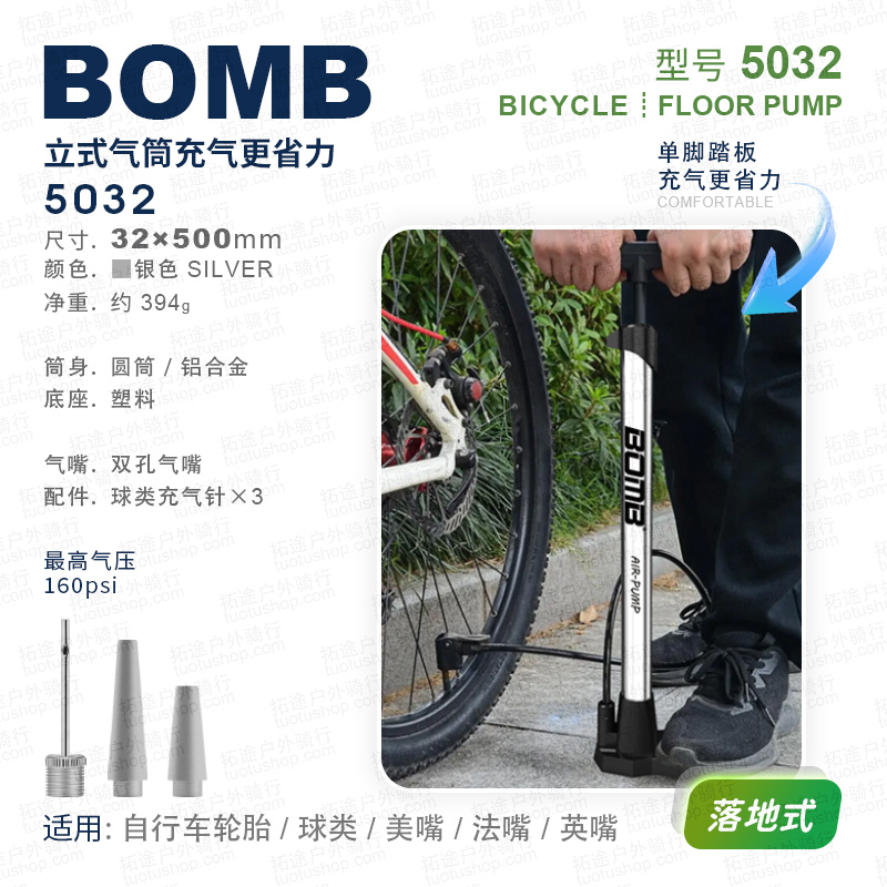 百美BOMB/5032/自行车打气筒/落地式/160PSI