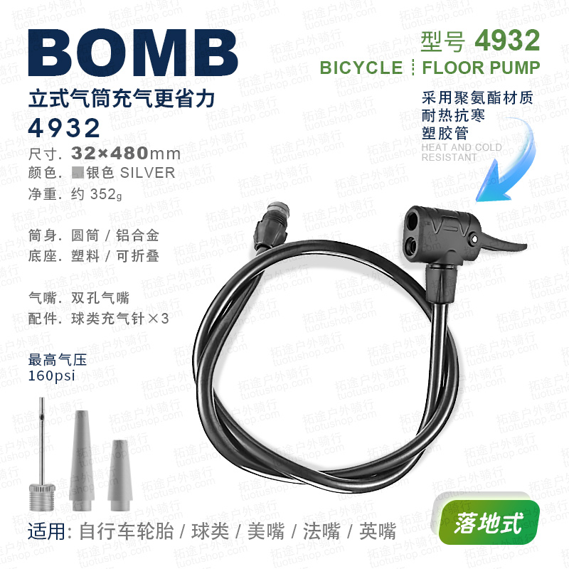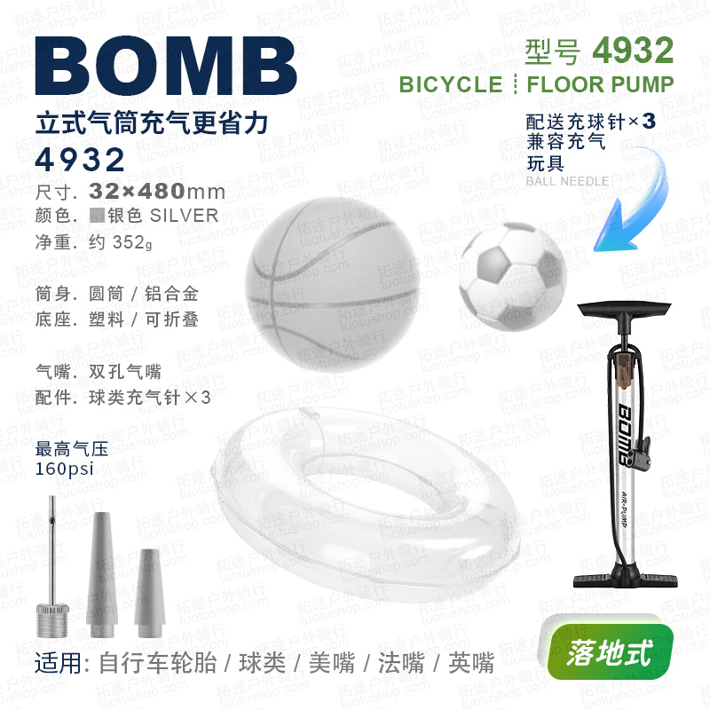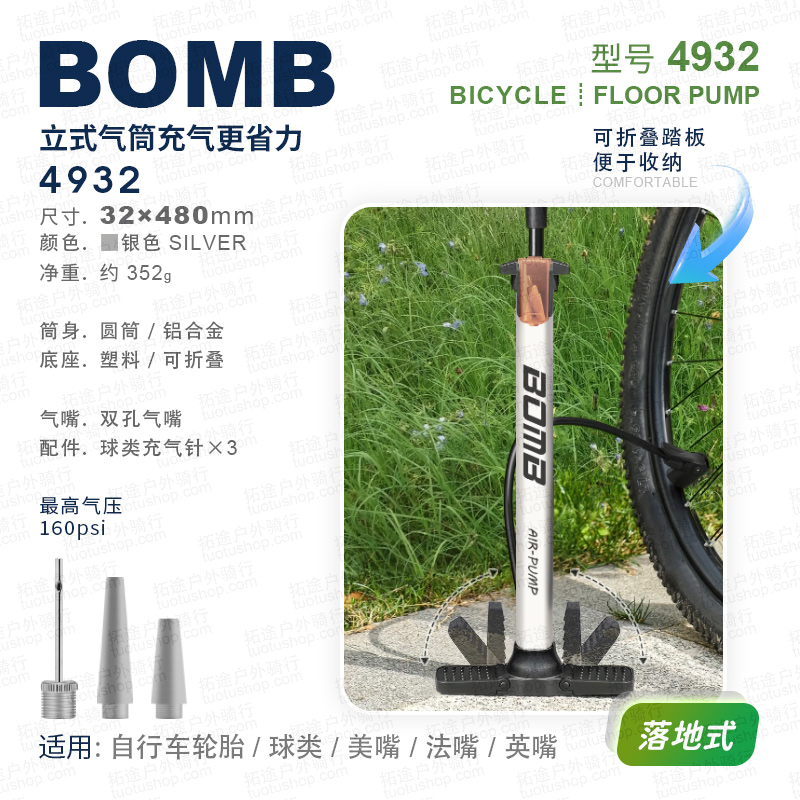 百美BOMB/4932/自行车打气筒/落地式/160PSI