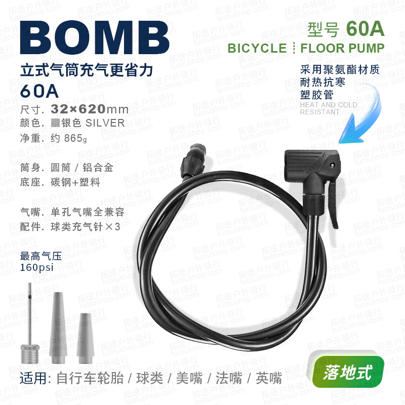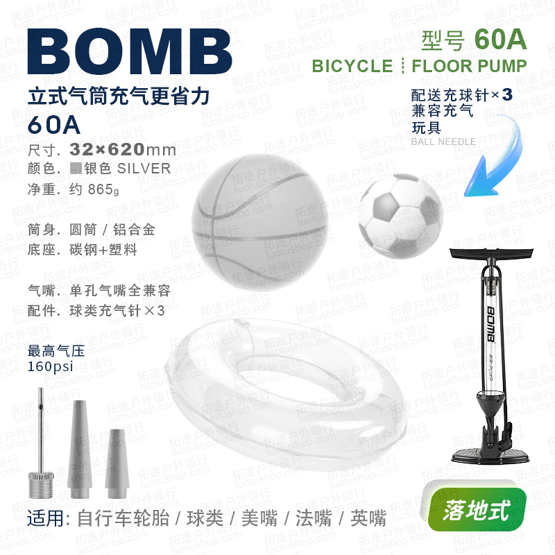 百美BOMB/60A/自行车打气筒/落地式/160PSI